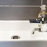 Zur Ausstattung des Badezimmers gehören auch eine Waschmaschine. Es gibt Handtücher für zusätzlichen Komfort.